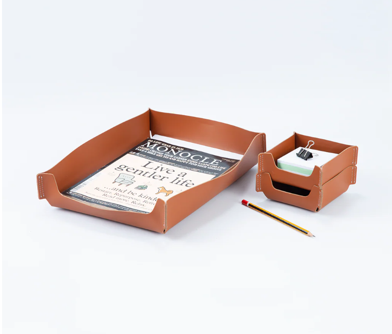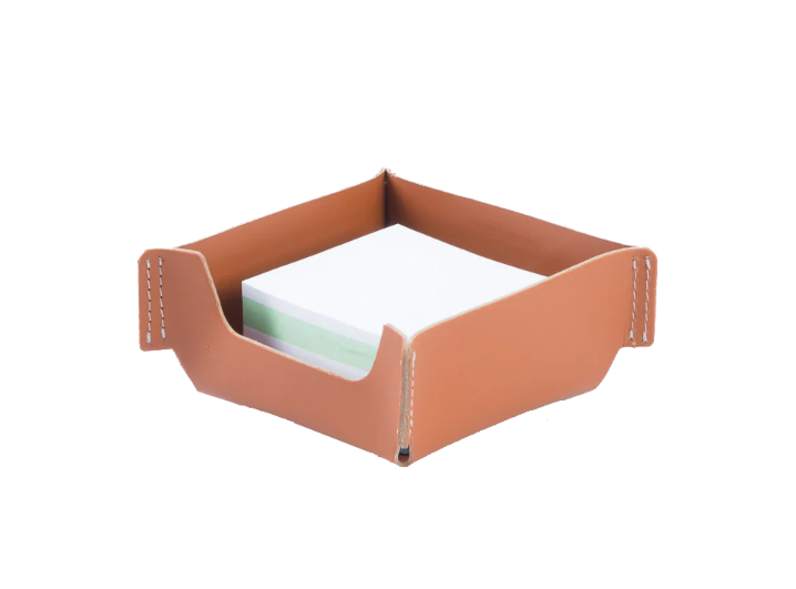 Stackable Note Holder, sober and elegant. It can be used both at home and in the office. Handmade details. Easy to clean. Made with 100% recycled leather. Sustainable and durable design.