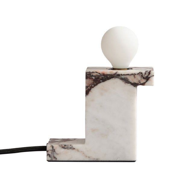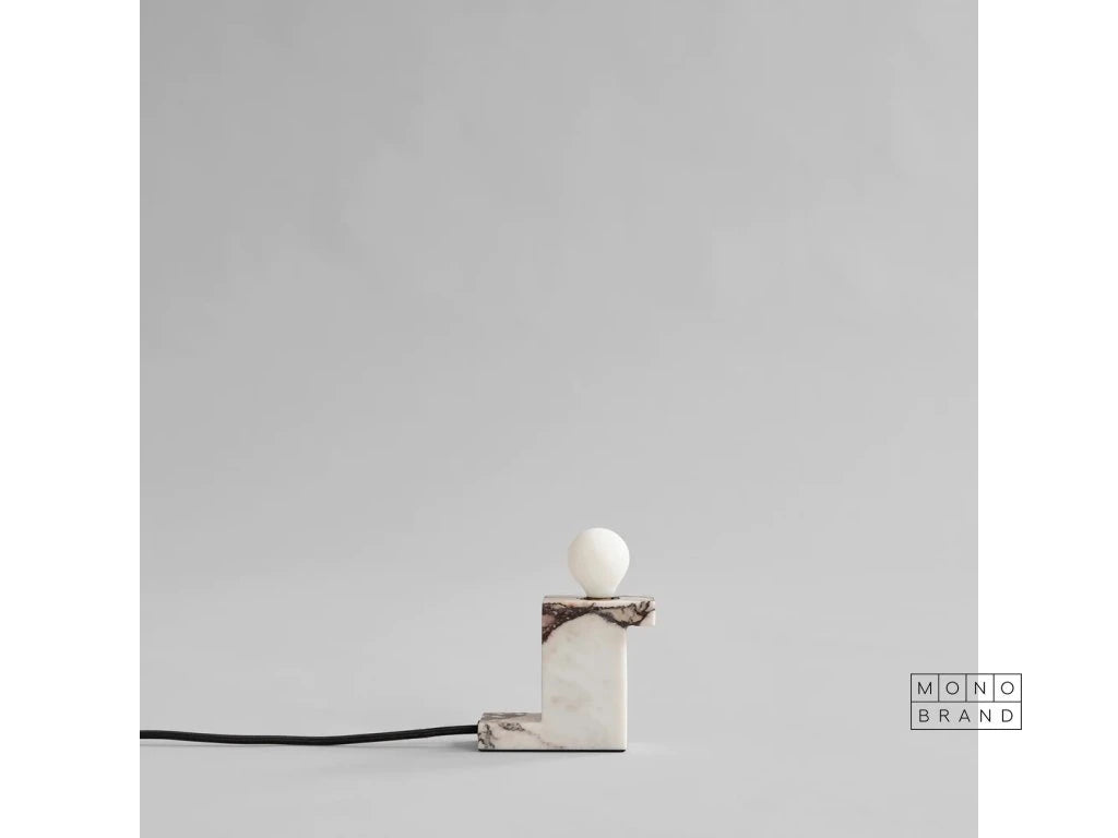 The Brick Lamp, Tall reinterprets architectural geometry through a sculptural lighting object crafted from Calacatta marble, where each piece is defined by unique natural veining. Its stacked, brick-like form creates a strong vertical presence, while the soft, diffused light adds warmth and contrast to the lamp’s solid expression. Balancing monumentality with minimalism, the lamp functions as both a light source and a sculptural object, making it a timeless statement for contemporary interiors that reflects 101 Copenhagen’s dedication to materiality, form, and atmosphere.