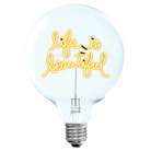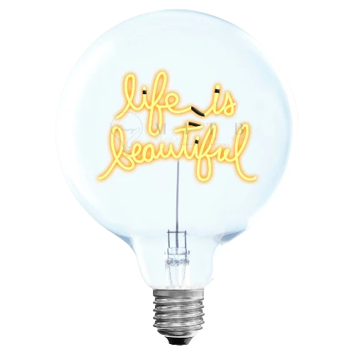 The MITB “Life Is Beautiful” Amber Bulb brings warmth and optimism into any room. Crafted from amber-tinted glass and fitted with an E27 base, this LED filament bulb spells out the uplifting message “LIFE IS BEAUTIFUL”, casting a soft, golden glow. Designed for plug-in use with standard fixtures (or compatible MITB bases), it combines thoughtful sentiment with elegant lighting—making it a perfect accent to brighten your space and your outlook.