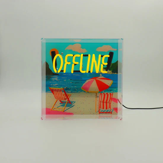 The Neon Box Sign in Offline by Locomocean is a modern, playful statement piece that blends vibrant design with contemporary flair. Crafted from glowing neon acrylic, its bold lettering creates a luminous focal point that energizes any space. Sleek and versatile, Offline works perfectly as a tabletop accent, shelf display, or eye-catching decorative object. With its fun, graphic aesthetic, this sign embodies Locomocean’s signature style, combining color, light, and innovative design to make everyday interiors feel lively and modern.