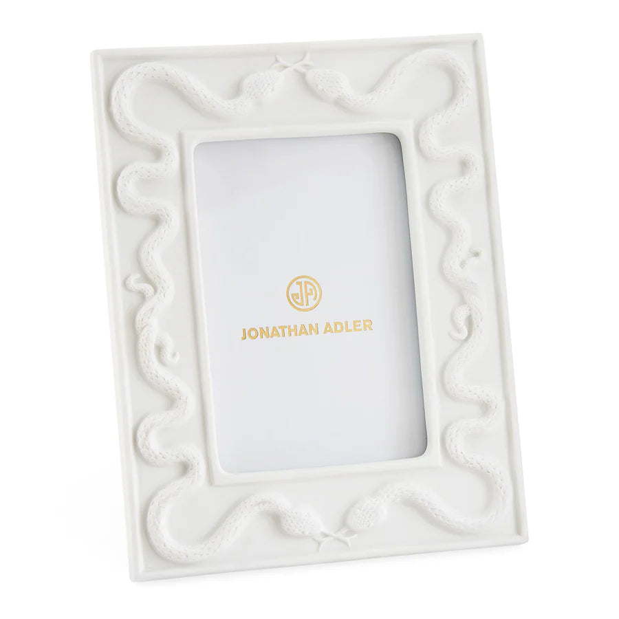 A luxe touch for your shelf, mantel, or tablescape, our Eden picture frame features our signature slithering serpents, each hand-carved in the highest quality matte porcelain—the perfect place for memories to pop.