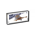The Graphite Edge Magnet Frame offers a modern twist on the classic Original Magnet Frame, featuring sleek black edging that subtly enhances your photo. Crafted from two thick panels of crystal-clear acrylic, it's held together by small magnets—no hardware required. Easily display two photos back-to-back, either vertically or horizontally. The graphite detail adds depth and sophistication while blending effortlessly with any décor. Available in 8 versatile sizes.