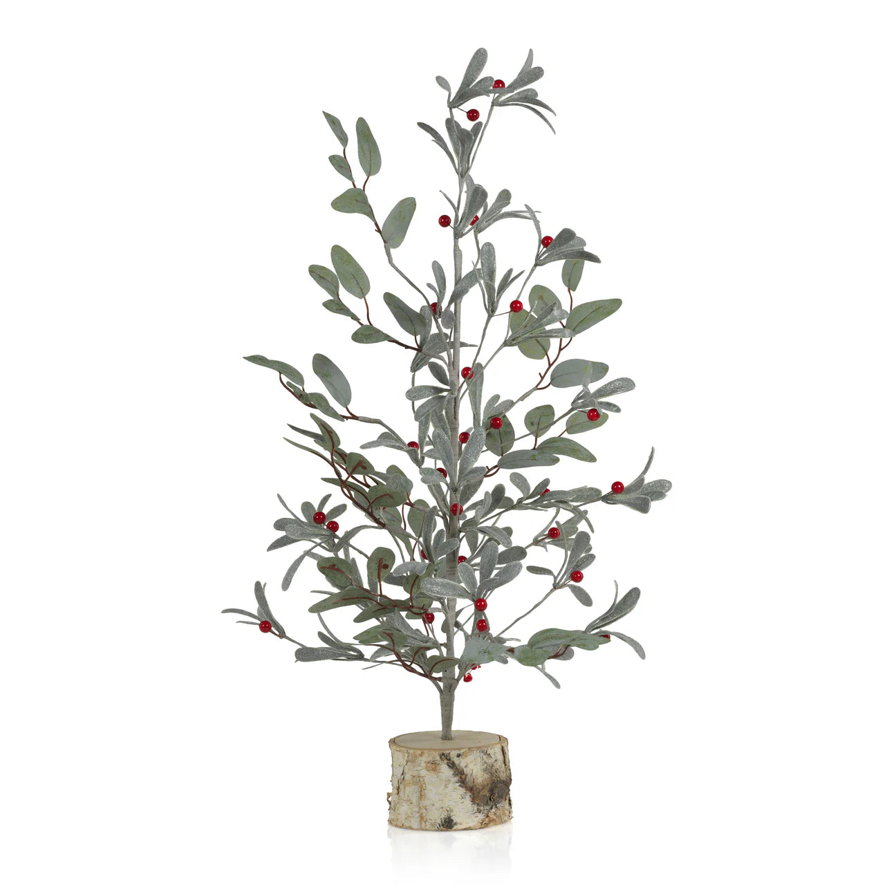 FROSTED MISTLETOE TREE RED BERRIES SHORT