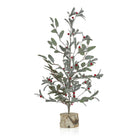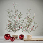 The Frosted Eucalyptus Tree with Red Berries on Birch Base (27.5") by Zodax is a festive and elegant holiday accent. Featuring frosted eucalyptus foliage accented with vibrant red berries atop a natural birch base, it brings texture, color, and seasonal charm to any space. Perfect as a centerpiece, mantelpiece decoration, or part of a layered holiday display, this sculptural tree adds warmth and festive sophistication to seasonal décor.