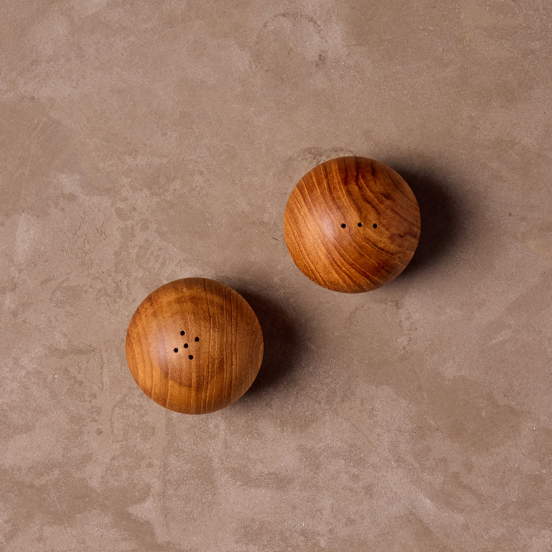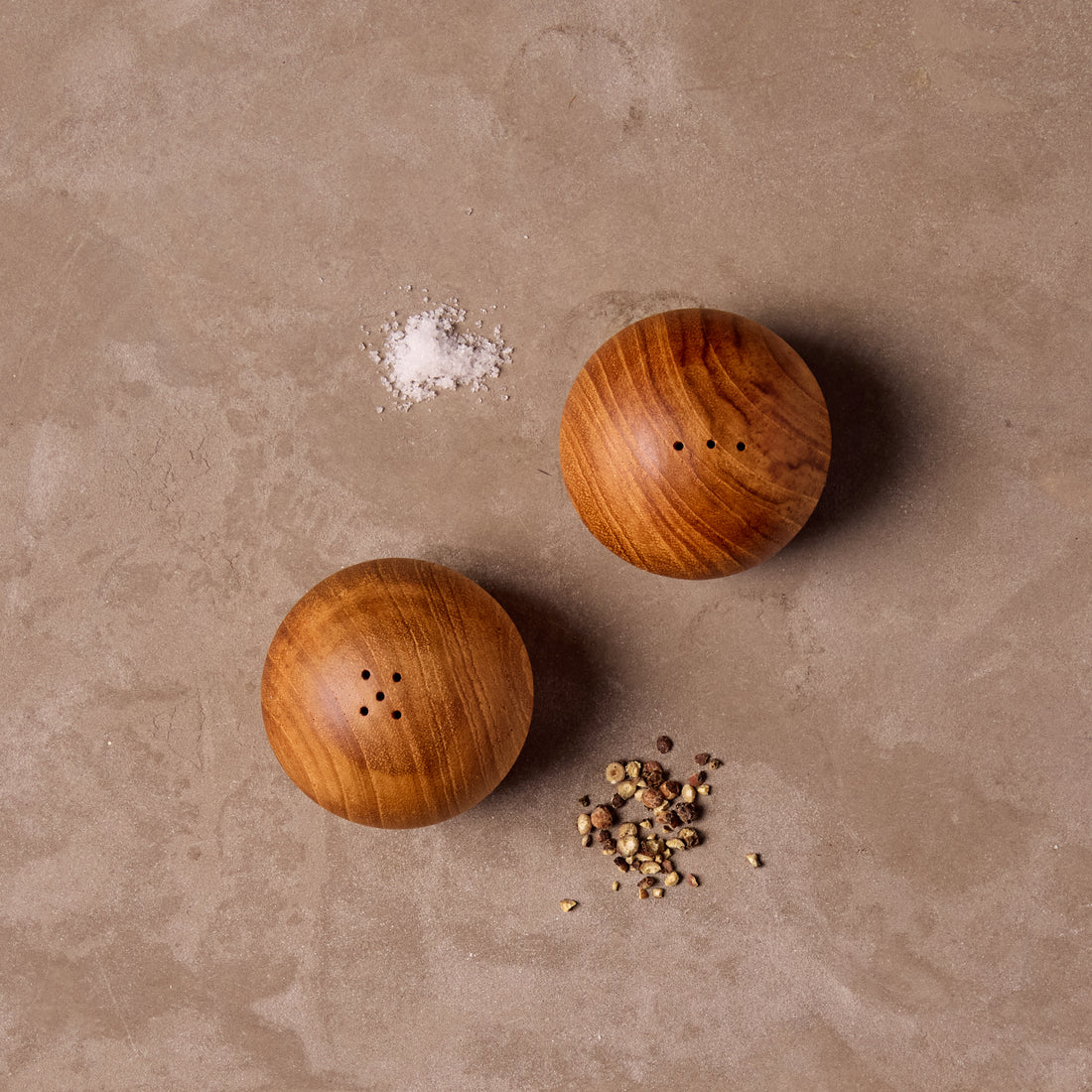 Hand-carved from a single piece of teak wood, the Teak Salt & Pepper Shaker Set brings warmth and character to your table. Designed by Be Home and crafted by artisans in Thailand, each piece showcases the natural beauty and unique grain of teak sourced from protected groves. A simple yet striking addition to any dining space.