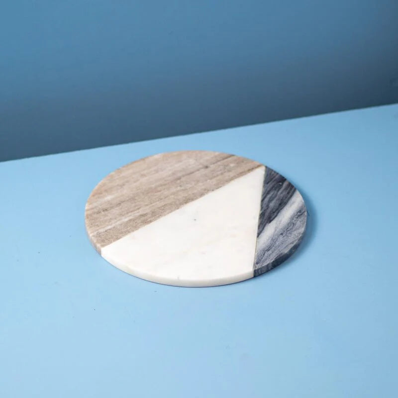 Elevate your collection with this elegant geometric marble serving board. Crafted to impress, it brings a perfect blend of beauty and durability to any table setting. Sourced from Agra—home to the iconic Taj Mahal and a global symbol of marble artistry—each board features natural variations in tone and color, making every piece truly one of a kind.
