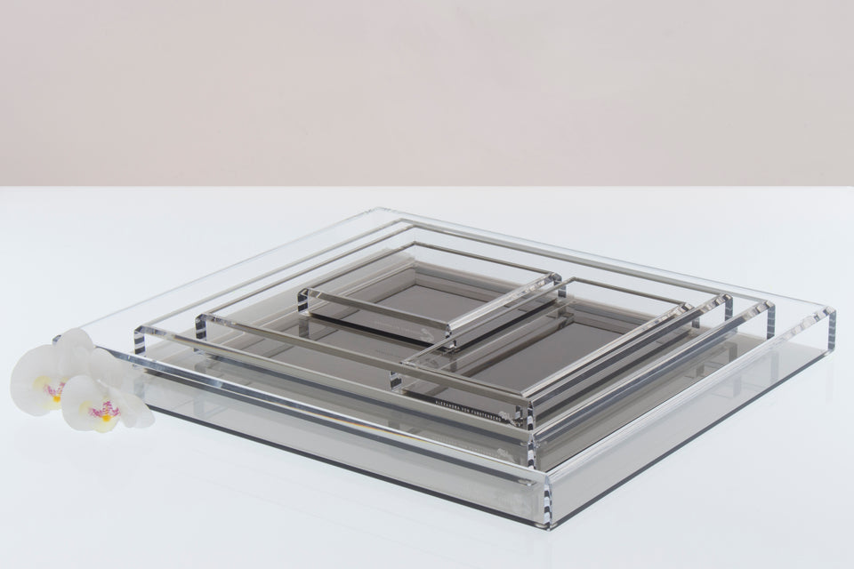 Enhance your space with the Alexandra Von Furstenberg Bronze Decorative Tray, a stylish blend of modern design and functionality. Hand-crafted from premium acrylic, its faceted edges beautifully catch the light, adding a sophisticated shine to any room.