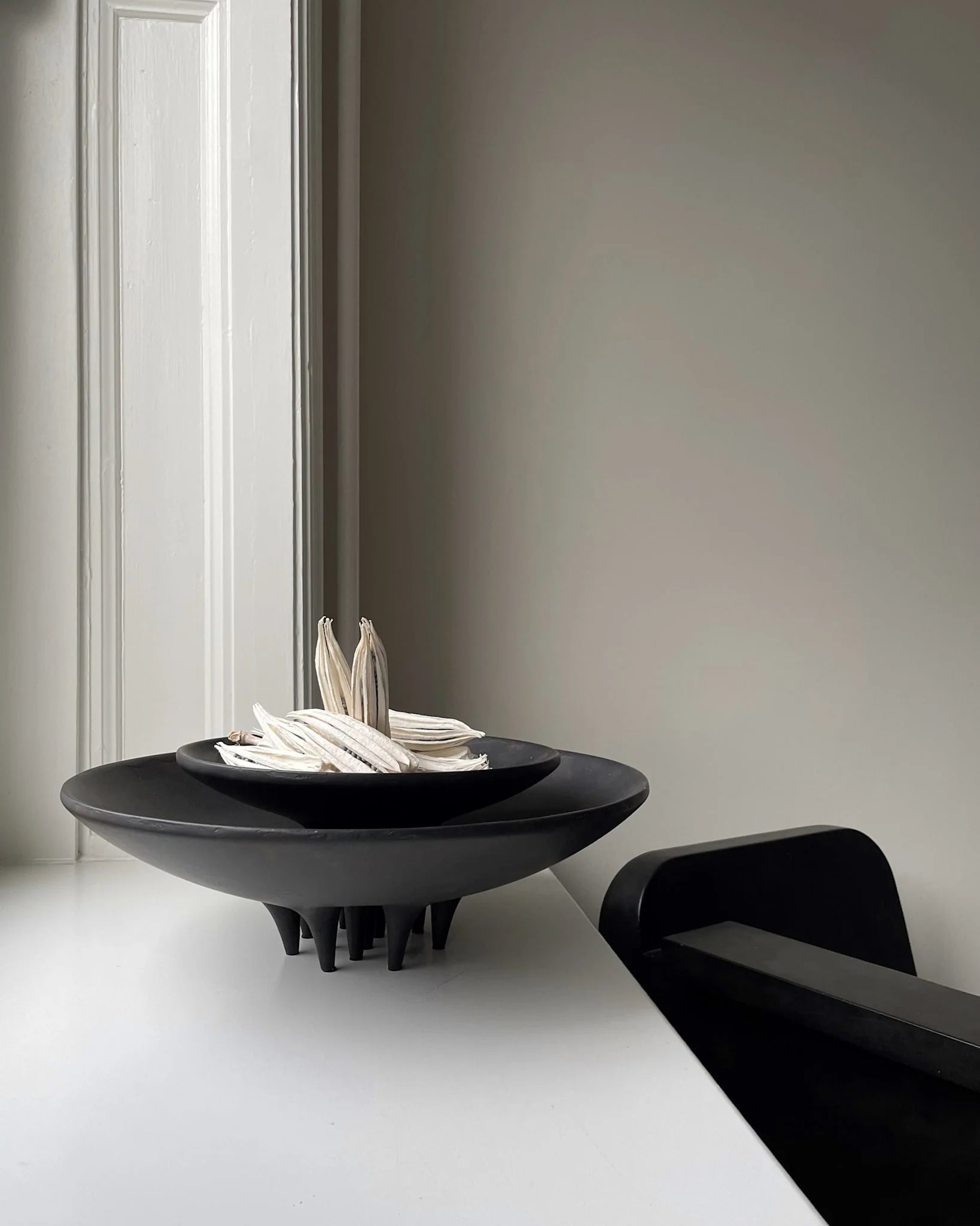 The Medusa collection draws inspiration from the soft, oval forms of jellyfish, featuring elegantly sculpted pieces lifted by small conical legs that resemble tentacles. With a simple and refined design, Medusa fits effortlessly into any interior as a sculptural accent. Each piece is hand-glazed for a unique texture, with slight color variations due to its handmade nature. Note that the tray is not 100% waterproof.