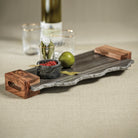 NAIROBI GRAY MARBLE TRAY WITH ACACIA HANDLES