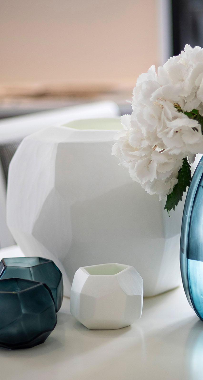The CUBISTIC ROUND vase in opal by GUAXS is a beautifully crafted piece made from mouth-blown glass with a hand-cut surface. This sophisticated design is brought to life by skilled artisans in the workshops of the family-run German brand GUAXS, known for its commitment to modern, high-quality home décor. Inspired by a deep exploration of global cultures and the common threads connecting them—from ancient history to contemporary art—this vase blends tradition and modernity into a truly striking design.