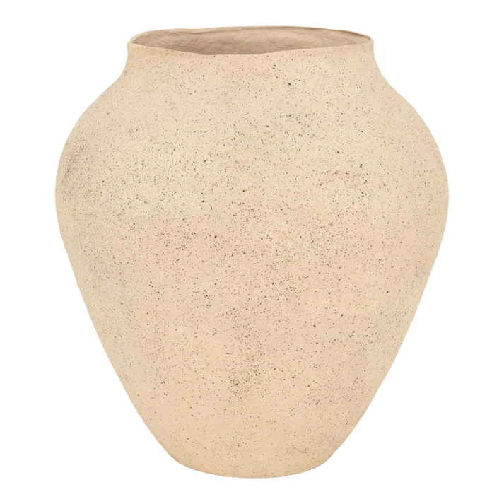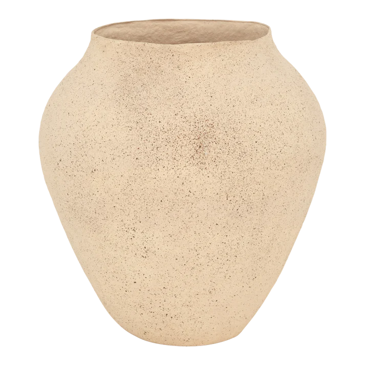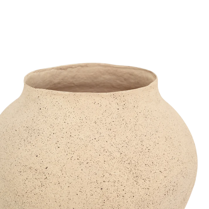Discover the perfect blend of style and sustainability, with Urban Nature Culture’s cotton mache pot Olla. This natural beauty embodies the circular economy - being made from fabric waste of India’s clothing industry. Transformed into a stunning statement piece, this bulky pot with a sightly speckled Pale Khaki finish, adds a timeless look to your living room, bedroom, hallway or any other room it finds its home. Only for decoration, dry flowers or artificial plants.