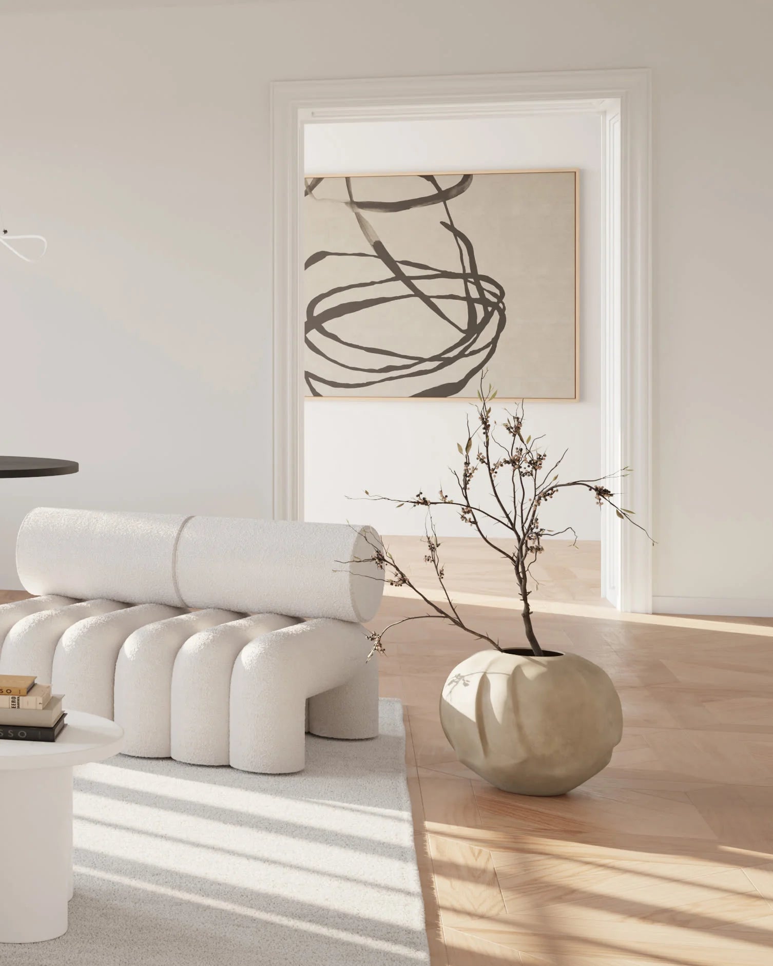 Inspired by the art of drapery, the Orimono Vases capture the elegant flow of textiles with their layered, curved surfaces. Named after the Japanese word for textile, this collection pays tribute to traditional Japanese craftsmanship in both clothing and interiors. Featuring an organic, handmade feel, the vases come in three sizes and are crafted from ceramic with a hand-glazed finish that creates a unique texture. Due to their artisanal nature, colors may vary slightly.