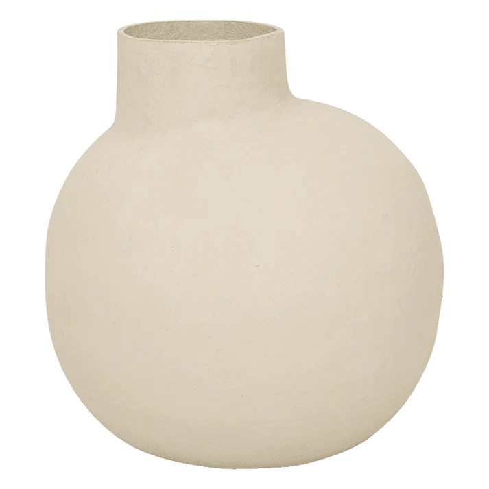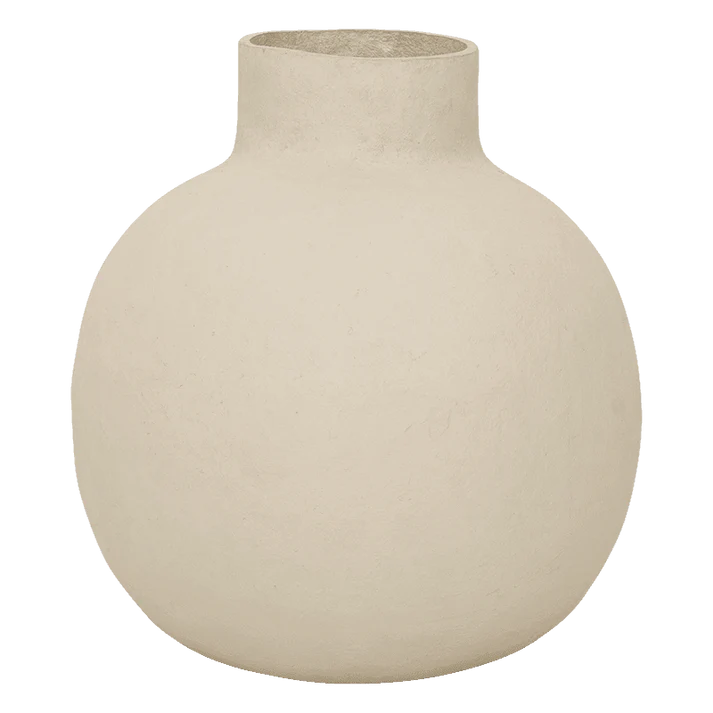 A revival is what Urban Nature Culture’s after – in circularity is where the Amsterdam brand makes it happen. Through pot Tuuli, the fabric waste of Indian factories receives a second life, and transforms into a modern, imperfectly shaped, decorative pot. Its skin is pulpy, matt and carries a high sense of tactility – combined with its bulging belly, asymmetric neck and warm, calming sand shade, makes for a great urban classic for your interior. Made of cotton maché, Tuuli displays dry or dried decorative items only.