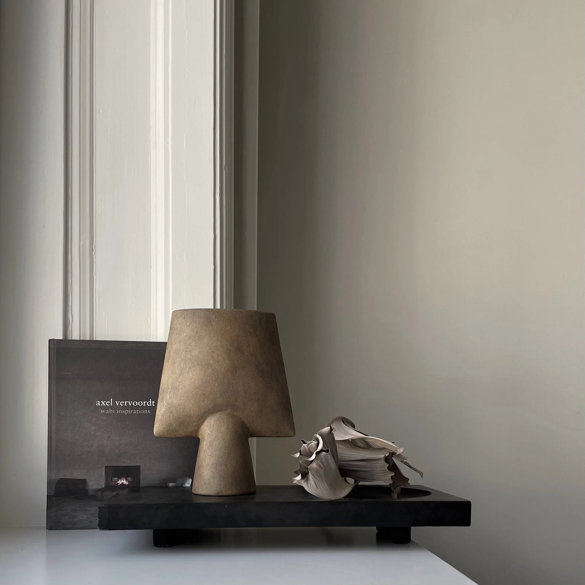 The Sphere collection by 101 Copenhagen is defined by its distinctive sculptural silhouettes and refined textures. Drawing inspiration from ancient Chinese vases, each piece features ornate detailing and a palette of soft, earthy tones. Designed in collaboration with skilled ceramists, the collection balances smooth curves with sharp edges for a striking visual contrast. Hand-glazed for a unique finish, slight variations in color are part of each piece's charm. While not fully waterproof, a bag for fresh flowers is included, combining form and function in an elegant, artisanal design.