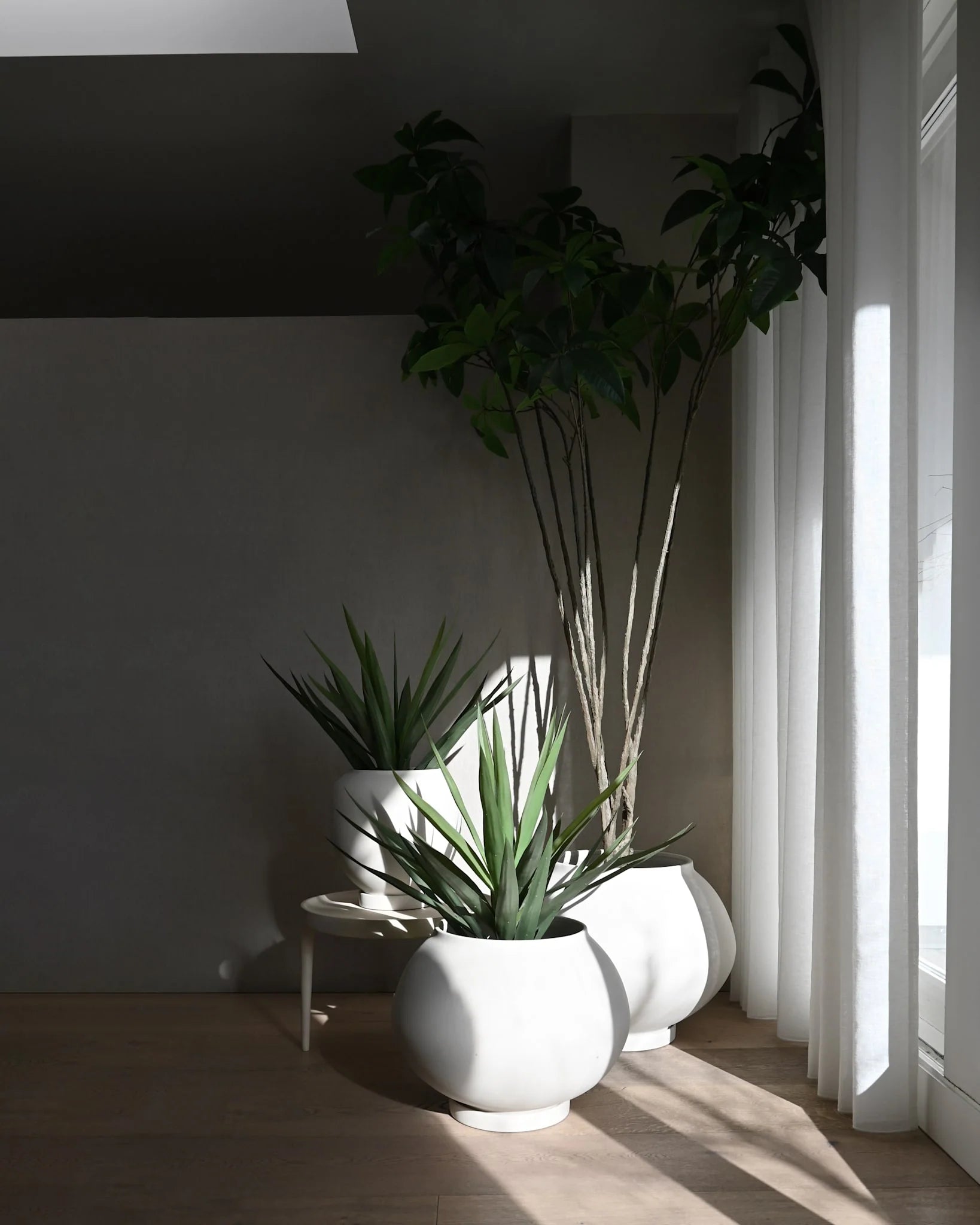 Inspired by the Japanese word Sunao, meaning honesty, the Sunao Plant Pot Fat series embraces the simplicity and timeless elegance of classic design. Featuring a wider, lower profile while maintaining the original Sunao silhouette, these sculptural planters are made from durable fiber concrete, suitable for both indoor and outdoor use.