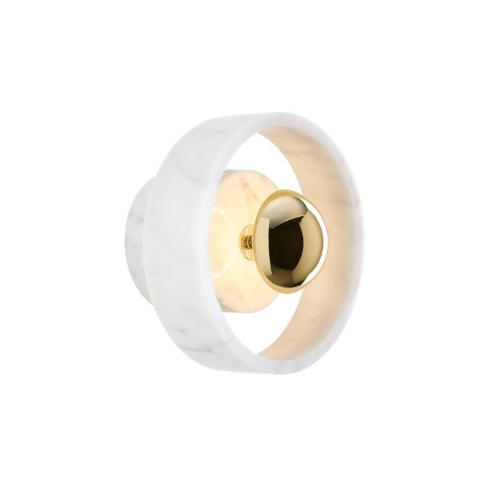 The stone wall light is crafted from heavy white marble, offering a tough yet tactile feel. With a unique circular shape, it combines minimalism with functionality. The LED light casts a playful round shadow when switched on, adding a distinctive mood to any space.