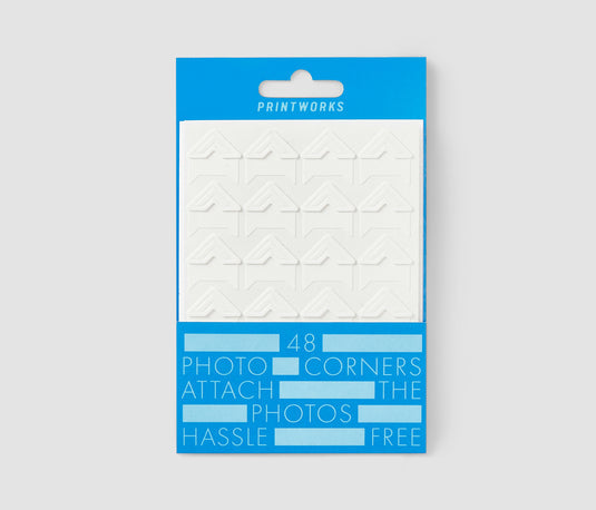 Attach your photos hassle-free with our matt white stick-on photo corners, which are seamlessly placed in each corner of the photo, framing your cherished moments with a delicate touch. The package contains 48 acid-free photo corners.