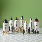 Send spirits into orbit with our Space Age porcelain Rocket decanters. Featuring real gold luster, each is embellished with Soviet era inspired typography—even bottom shelf booze feels out-of-this-world. Equipped with hardworking gaskets for optimal spirit storage. A stylish sophisticate deserves a fully styled bar to match: collect them all.
