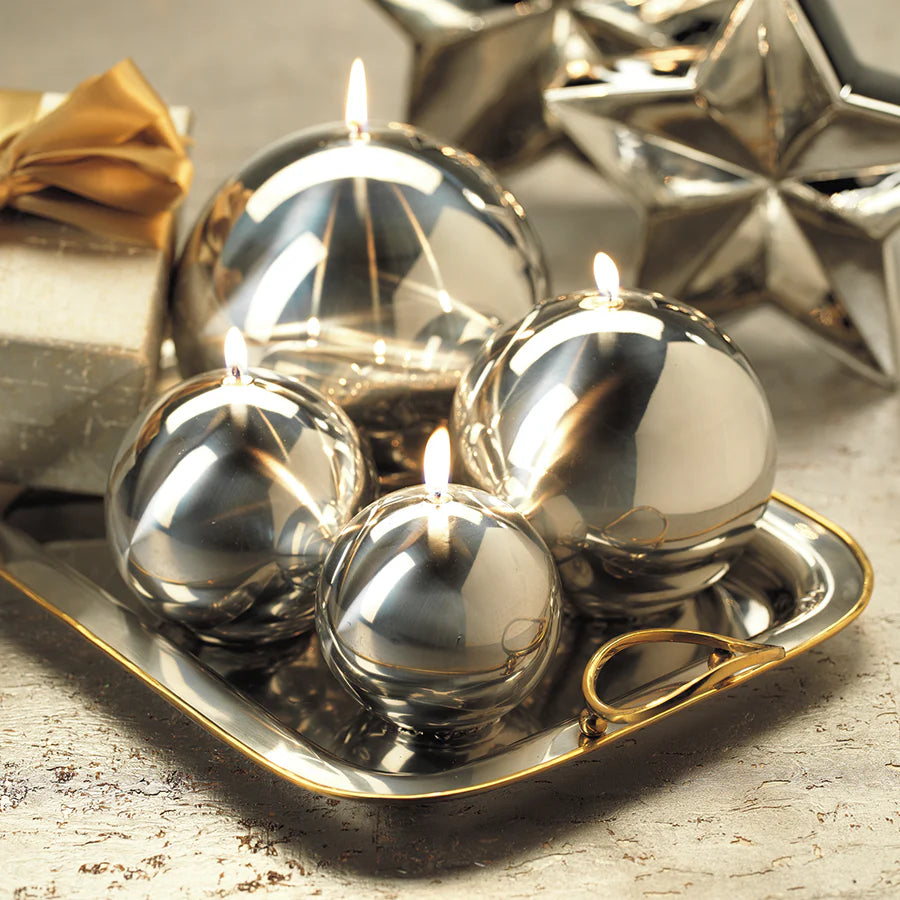 TITANIUM BALL CANDLE- SILVER/6"